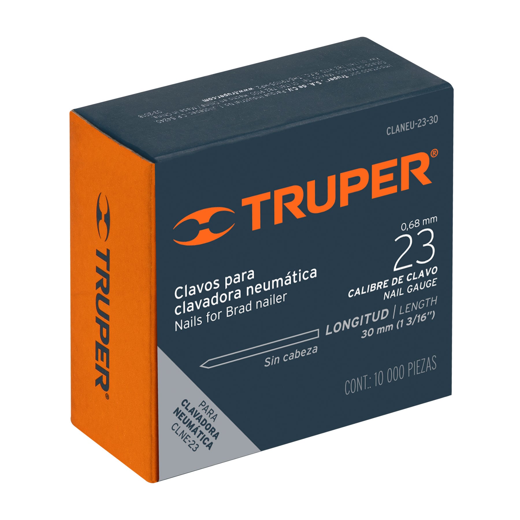 “Espesor: 0.68 mm Fabricados de acero. Ideal para clavadora neumática modelo CLNE-23 marca Truper® . Compatibles con otras marcas del mercado.”